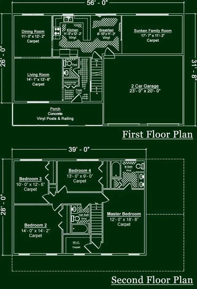 Floor plans showing the layout of a two-story residential house, labeled